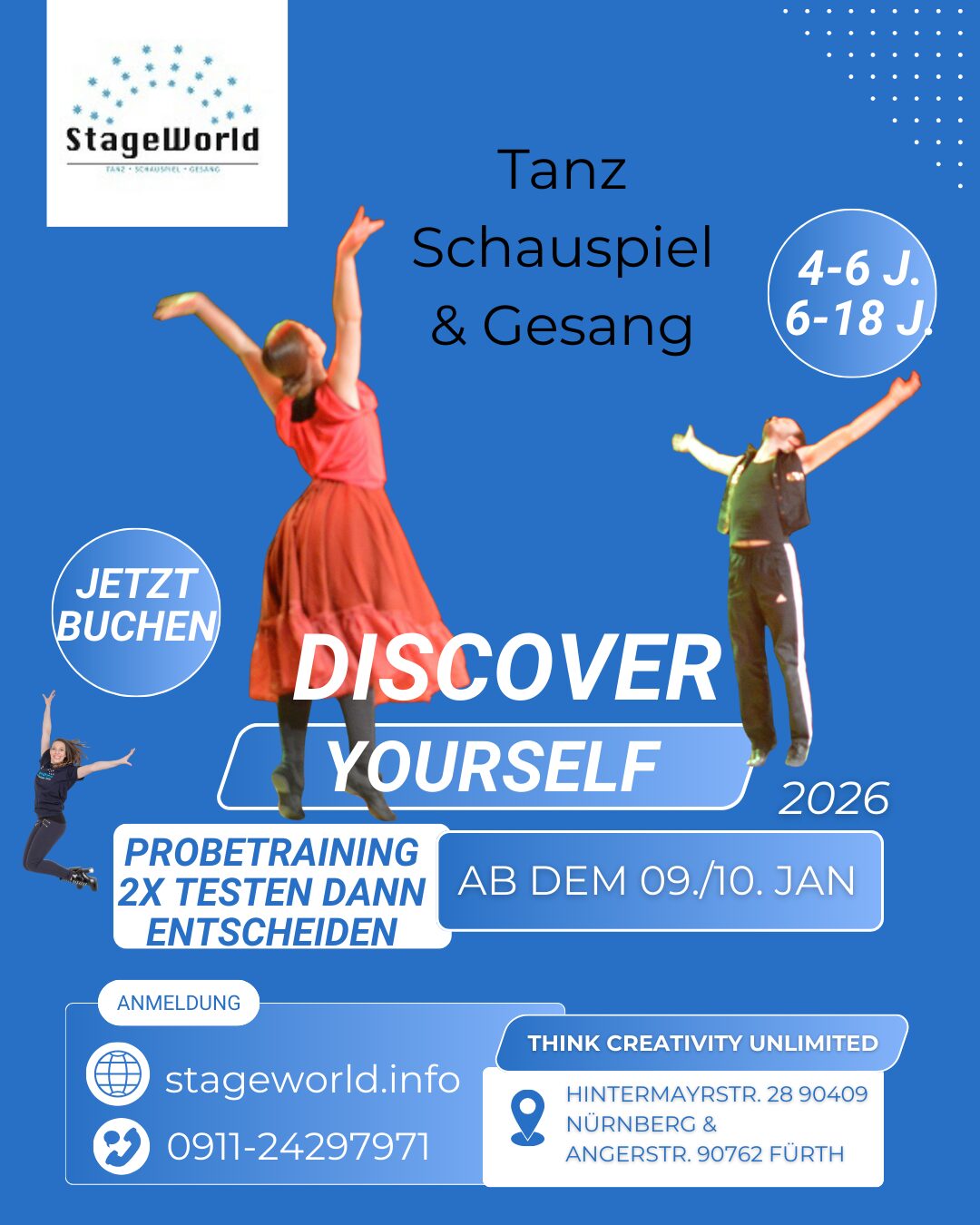 Sichern Sie sich jetzt einen Platz für Ihr Kind bei StageWorld in Nürnberg und Fürth! Platzreservierungen für unsere StageWorld Kurse sind ab sofort bis Ende